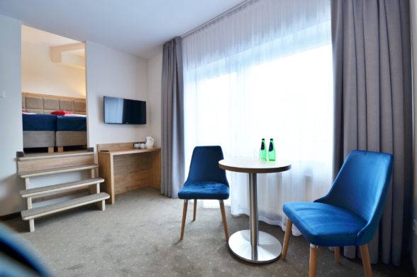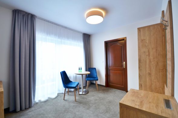 Wyposażenie pokoju: tv cyfrowa naziemna, telewizor z płaskim ekranem, Internet Wi-Fi, szafa, zasłony zaciemniające, prysznic, toaleta, łazienka, suszarka do włosów, ręczniki, szampon, żel, mydło, pościel, minibar, biurko, dwa krzesła, balkon.